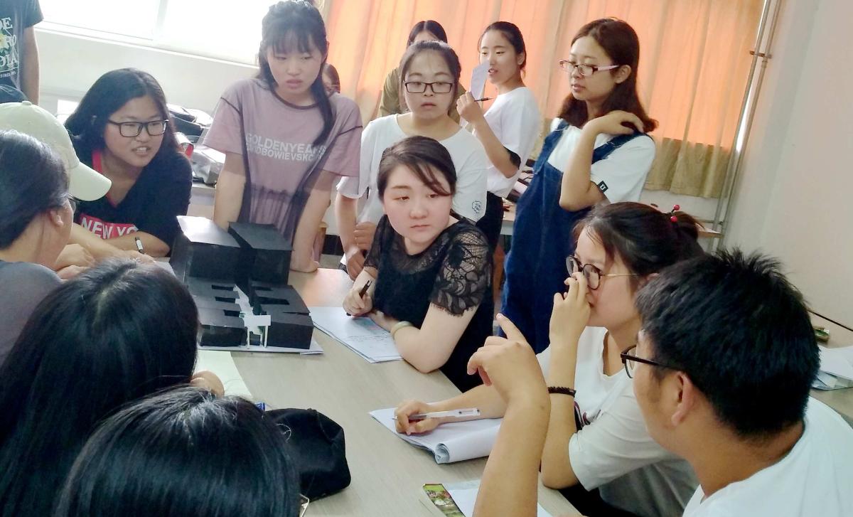 师生们在讨论设计方案