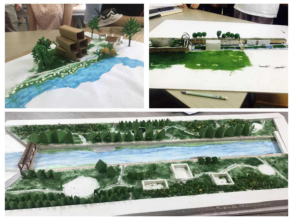 31日上午的课上,李满园与学生进行的项目讨论正是围绕四个情境之一的“滨水及湿地综合景观设计”展开的。师生们的讨论基于老师事先给出的一个“实题”:寻找许昌周边存在问题的综合公共空间并进行改造性设计。李满园介绍说,“之前同学们已经分组对项目进行了调研并拿出了设计方案,但从图纸上看不出地形等现实因素的变化,让大家做成草模可以更直观地感知问题所在”。而每一组学生在阐述设计理念时,其他组别的学生会分别扮演开发商、政府部门、市民等不同角色,提出质疑。