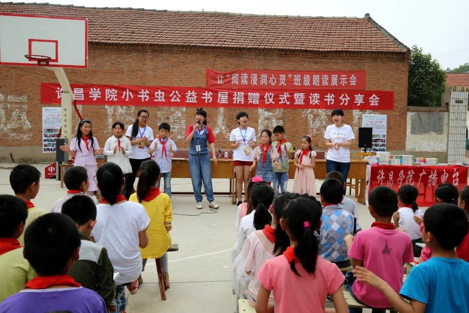 在校党委宣传部指导下,2013年许昌学院广播电台师生成立了“小书虫公益书屋”,帮助贫困地区学校建设图书室,并推广终身阅读理念。6年里,400余名师生走入乡村,筹集5万余元书款购置近万册图书,筹建了11山村小学公益书屋,使越来越多偏远地区中小学生成为受益者。2016年,“小书虫公益书屋”被学校评为“许昌学院学雷锋先进集体”,中国教育报、河南日报、中国新闻网、大豫网、许昌日报、许昌晨报等媒体也对此多有报道。